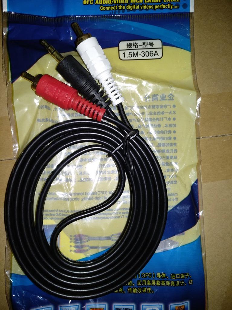 3,5 mm 1/8'' hane stereo miniplugguttag till 2 RCA stereotelefoner Datorljudhögtalarkabel