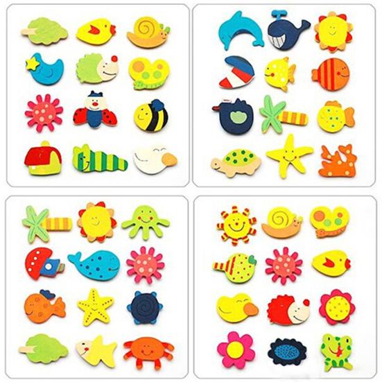 12st färgglada barn baby trä tecknad kylmagnet barn barn pedagogisk leksak