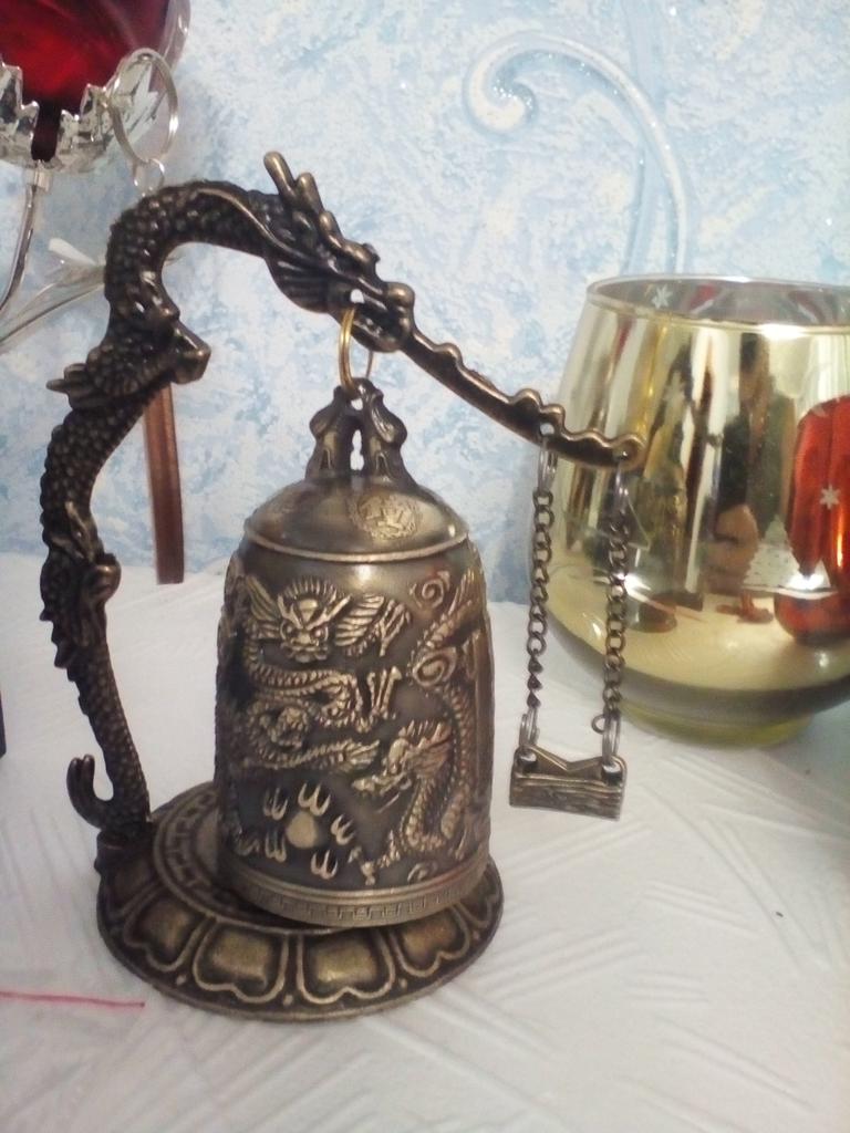 Lock Dragon snidad buddhistisk Lycka till Bell Geomantic for Meditation Altar