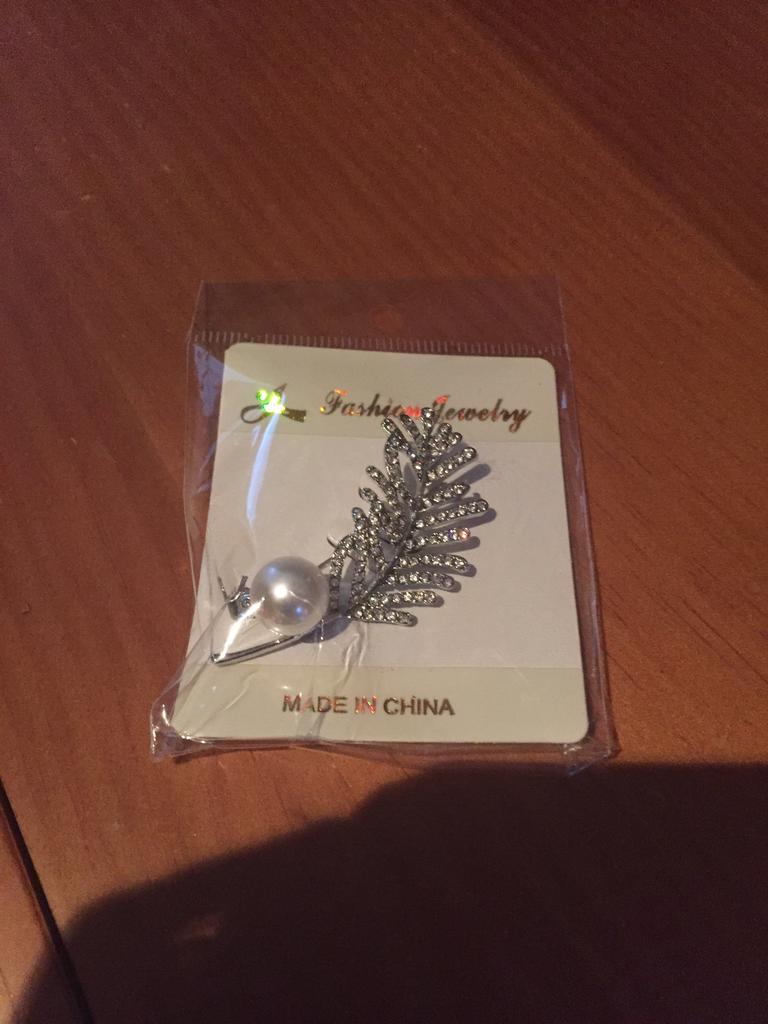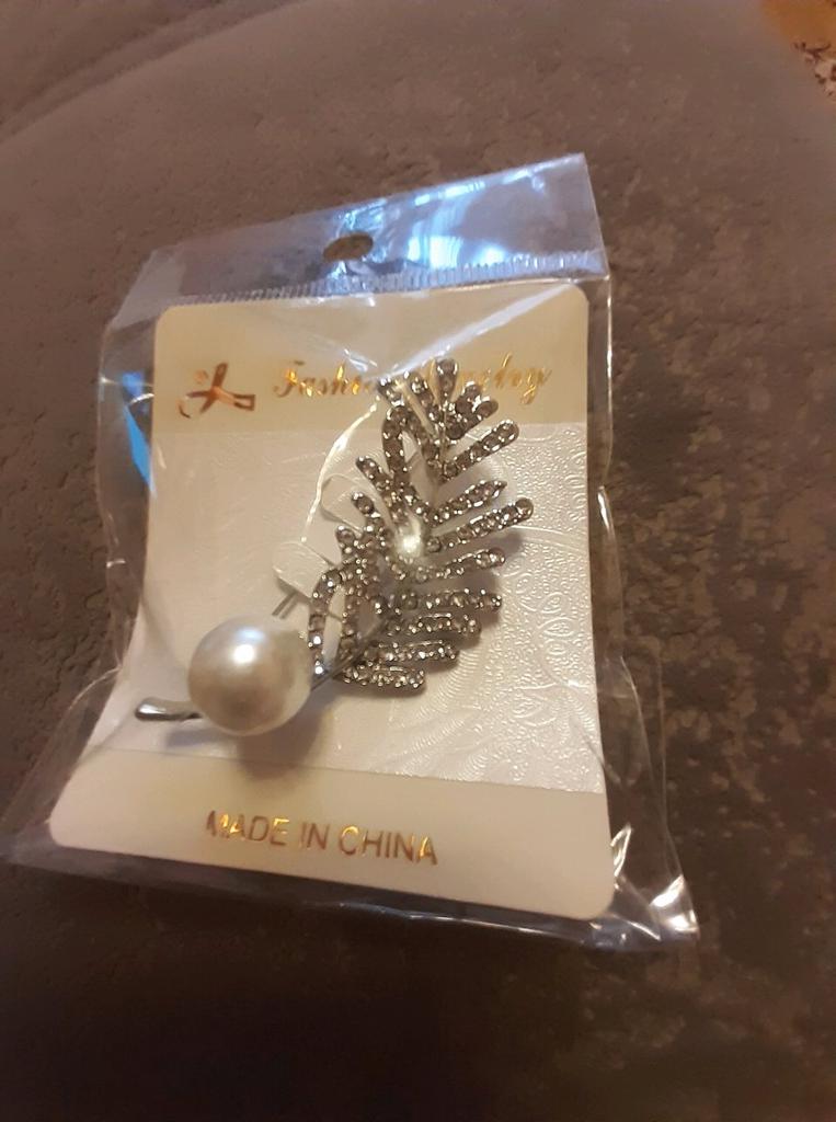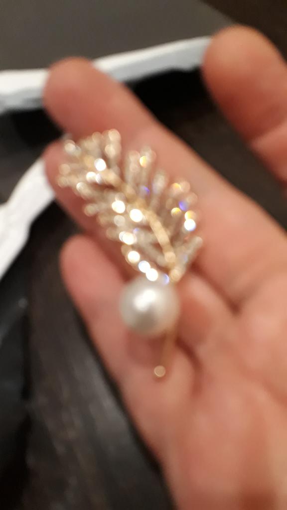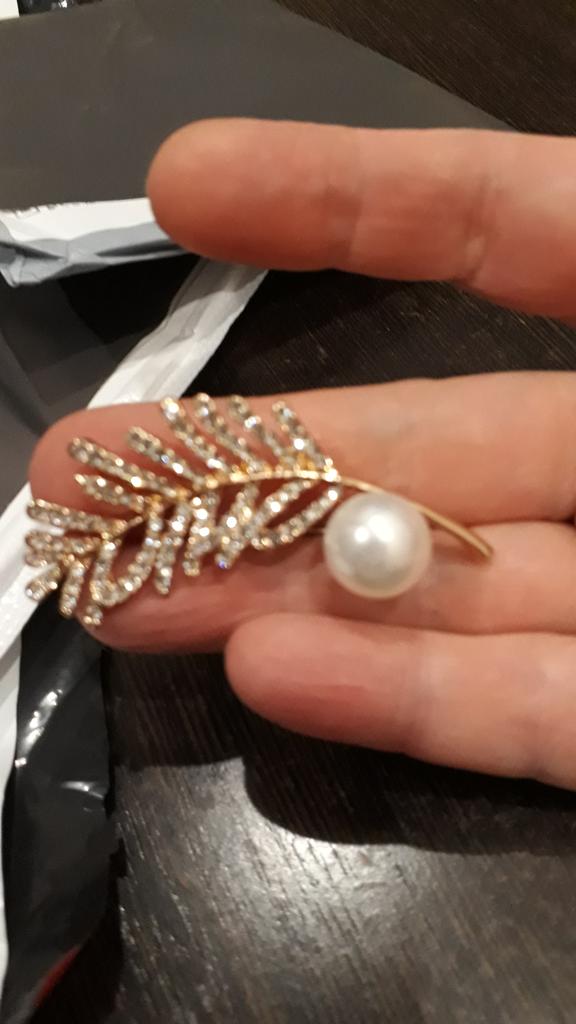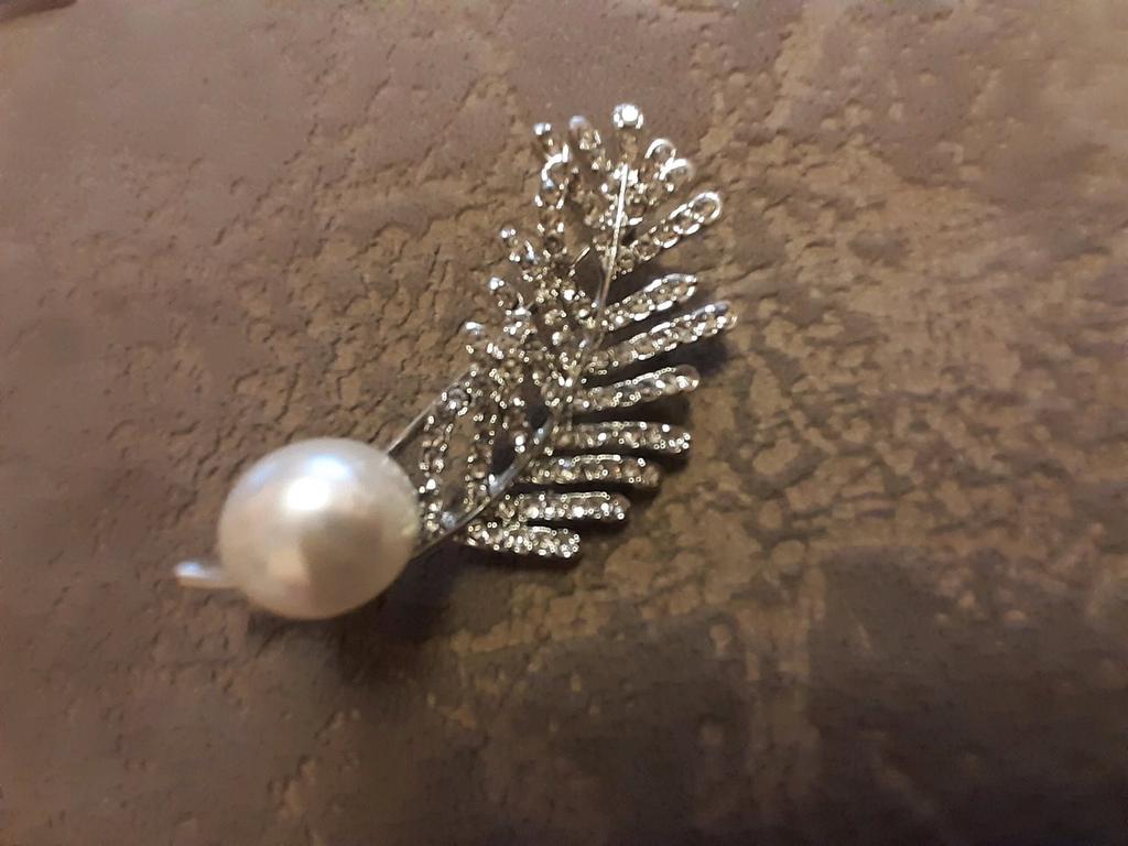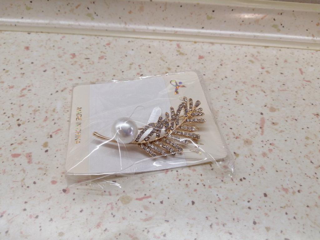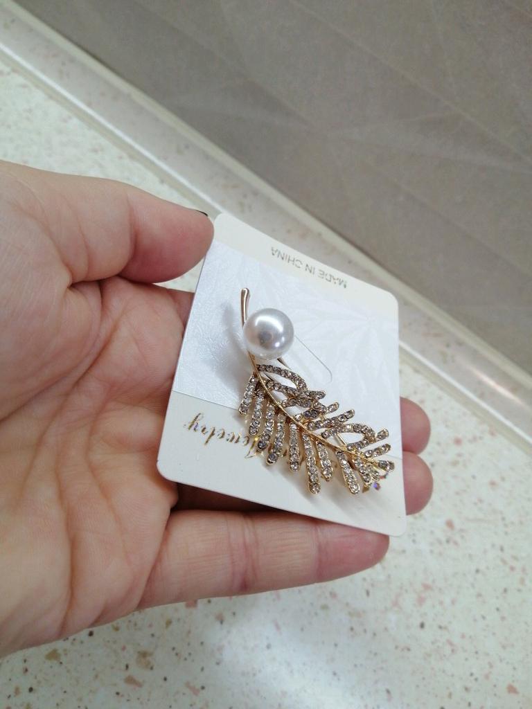 Women Elegant Rhinestone Leaf Pattern Faux Pearl Decor Brooch Pin Jewelry Xmas Gift