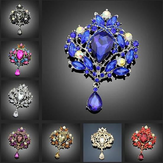 Damers Underbar Lyx Blomma Teardrop Strass Hänge Cocktail Broschnål