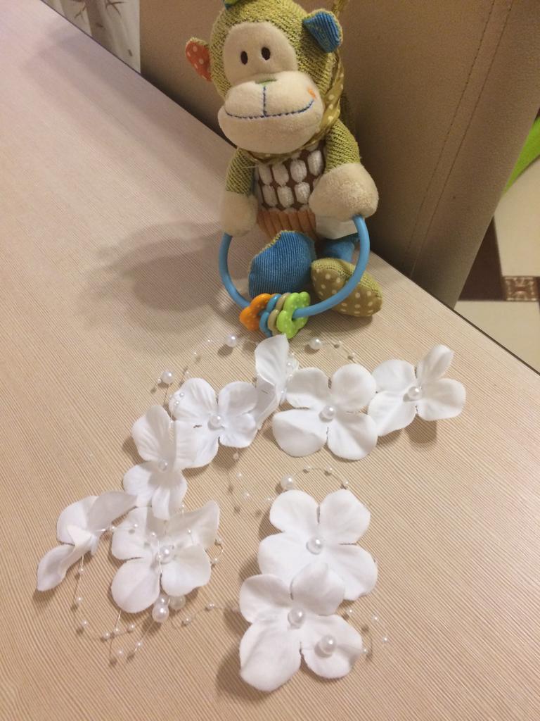 Kvinnor Böjbar Faux Pearl Flower Bröllopsfest Bröllops-pannband Tiara Huvudbonader