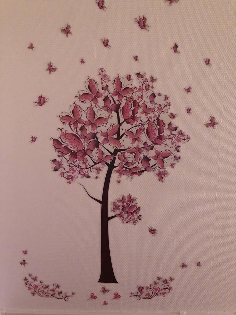 Rosa fjäril blommor träd avtagbar väggdekal Vardagsrum sovrum hem Dekal