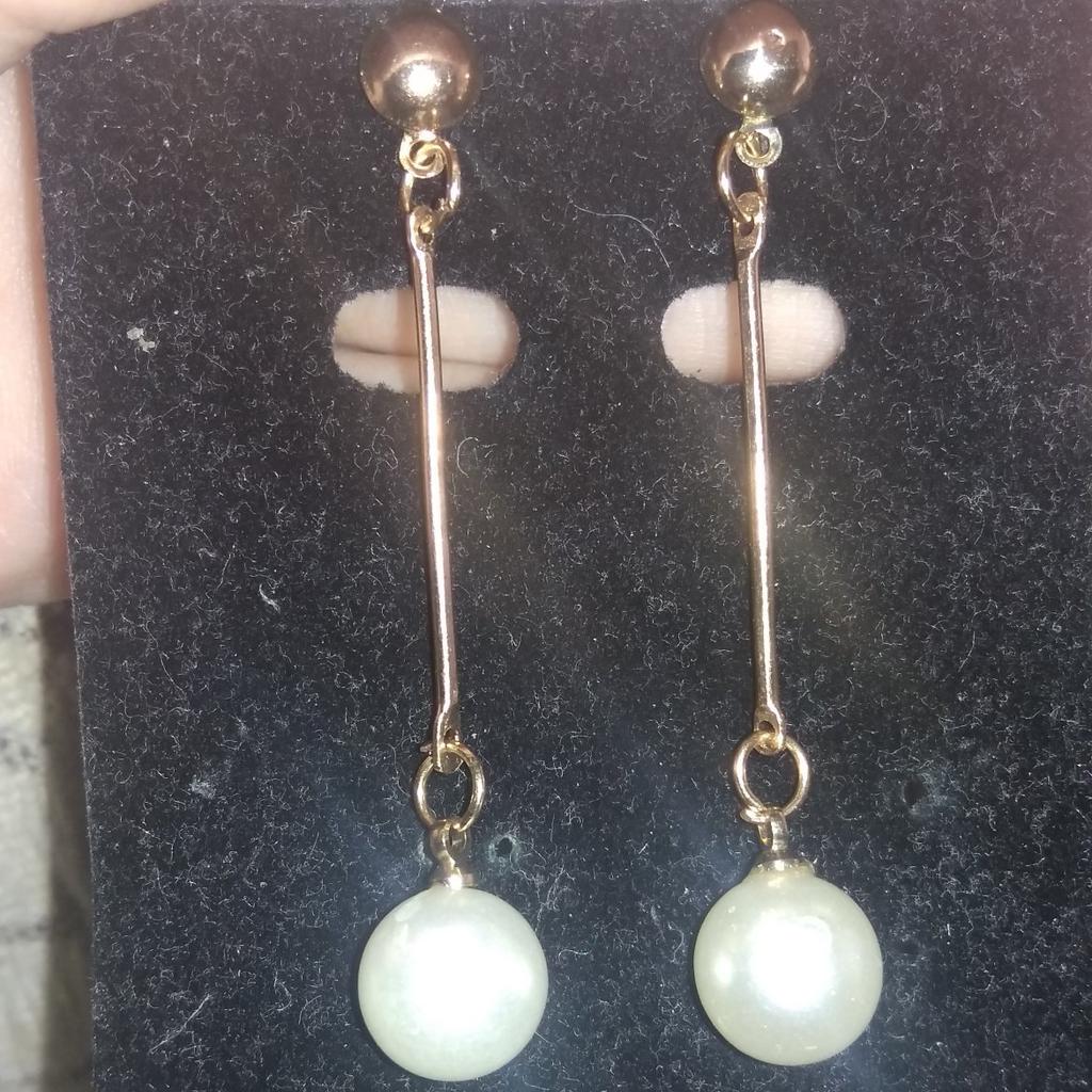 1Pair Women's Fashion Elegant Gold Plated Long Bar Faux Pearl Drop Earrings