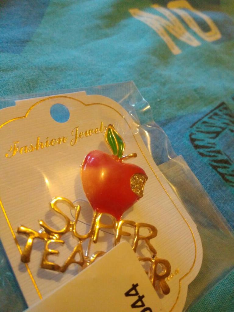 Ny röd superlärare julklapp unisex med kristallbroschnål Visa din kärlek