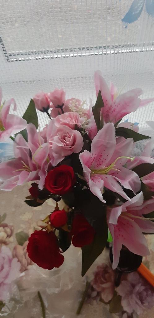 HS 10 huvuden konstgjorda falska sidenliljor Blomma brudbukett Bröllopsfest dekoration
