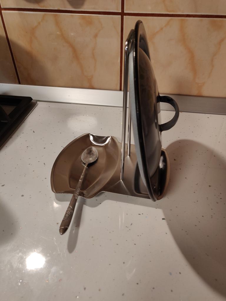 Pannlock i rostfritt stål Lock Stativ Ställ Skedhållare Spis Organizer Förvaring Soppa Skedstöd