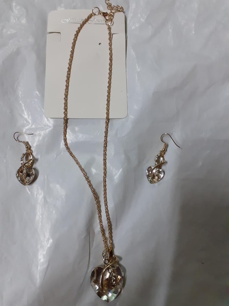 Elegant smycken Set Kvinnor Love Heart Cubic Zirconia CZ Bröllop Halsband Örhängen