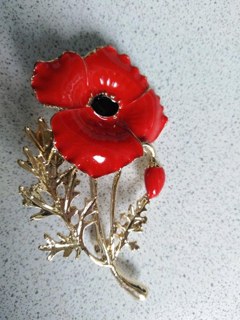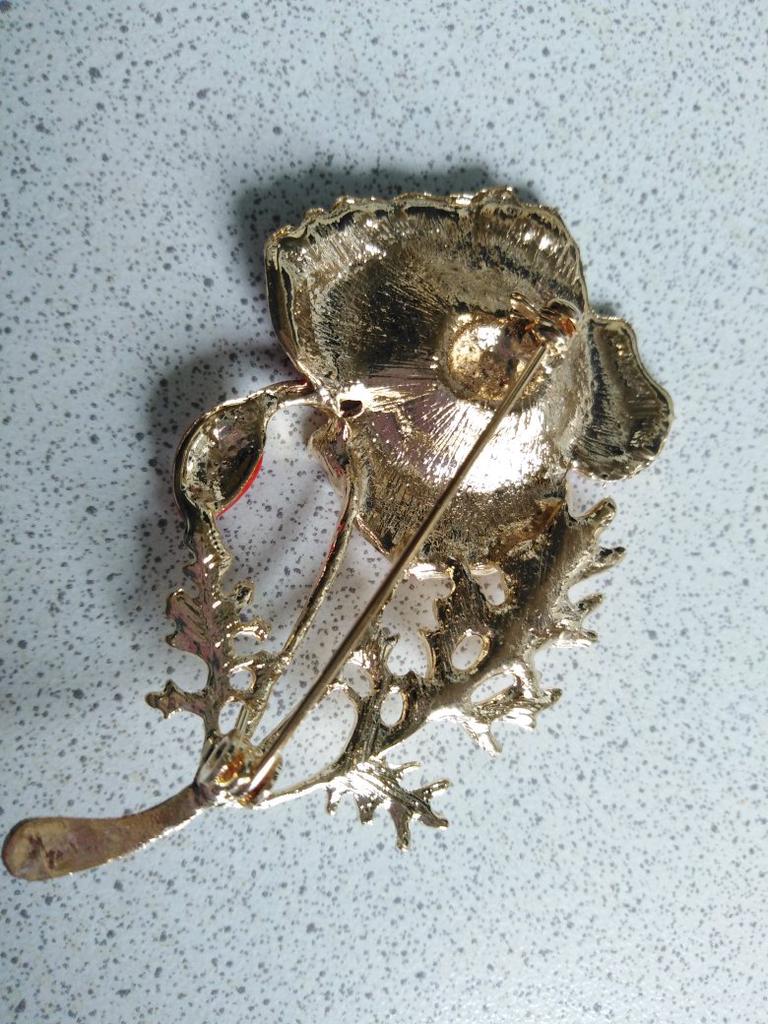 Nya Kreativa nejlikor Broschnålar Röd Blomma Broscher För Kvinnor Guldfärg Emalj Pin