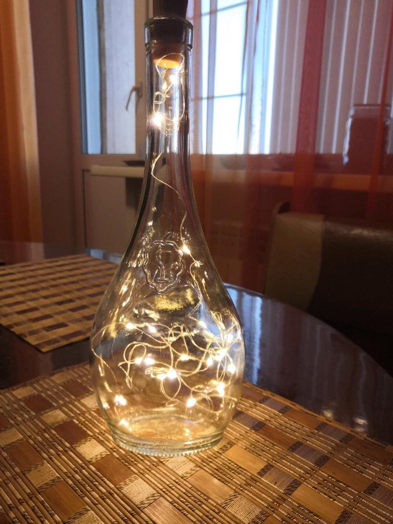 Colorful LED lights fit into the bottle or as a decorative element, e.g. for a garland. Length about 60cm.