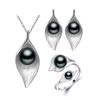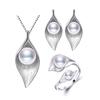 LSOOYH Lövdesign Naturliga sötvattenspärlörhängen Smyckesset Cubic Zirconia Halsbandsring