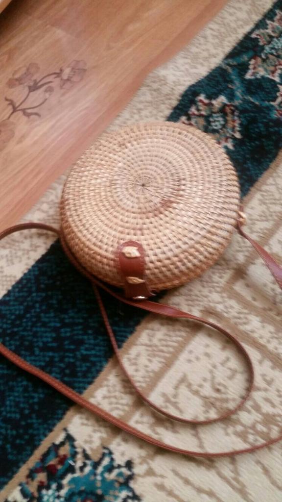 Små runda halmväskor Sommarrottingväska Handgjorda vävda Circle Beach Crossbody-väskor
