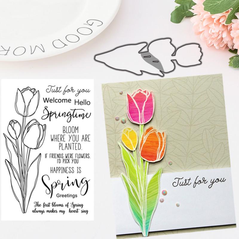 Liljeblomma Metallskärningsformar och Clear Stamp Set Scrapbooking Fotoalbum Dekorativ Prägling
