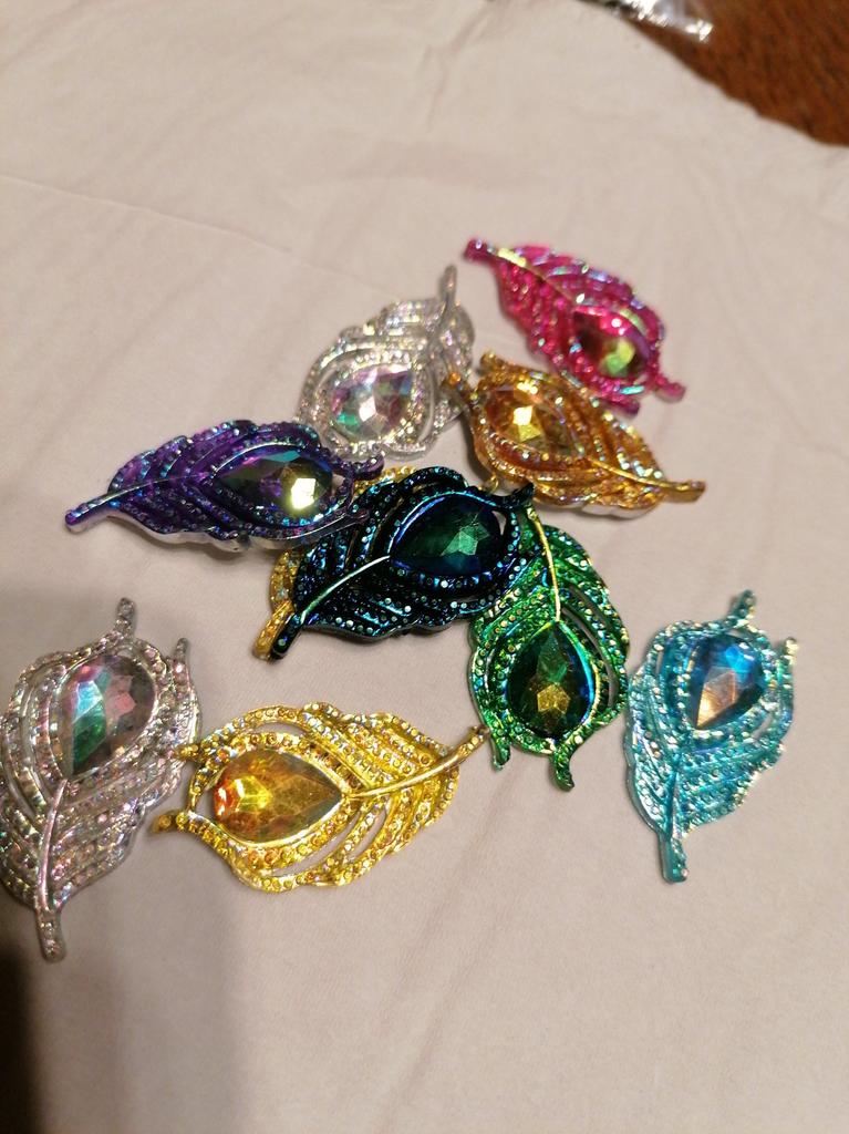 10ST AB Harts 3D Påfågelfjädrar Flatback Rhinestone Bröllop DIY-knappar