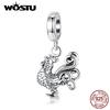 WOSTU Fashion 925 Sterling Silver Rooster Beads Animal Charms Original Pendant For Women Jewelry
