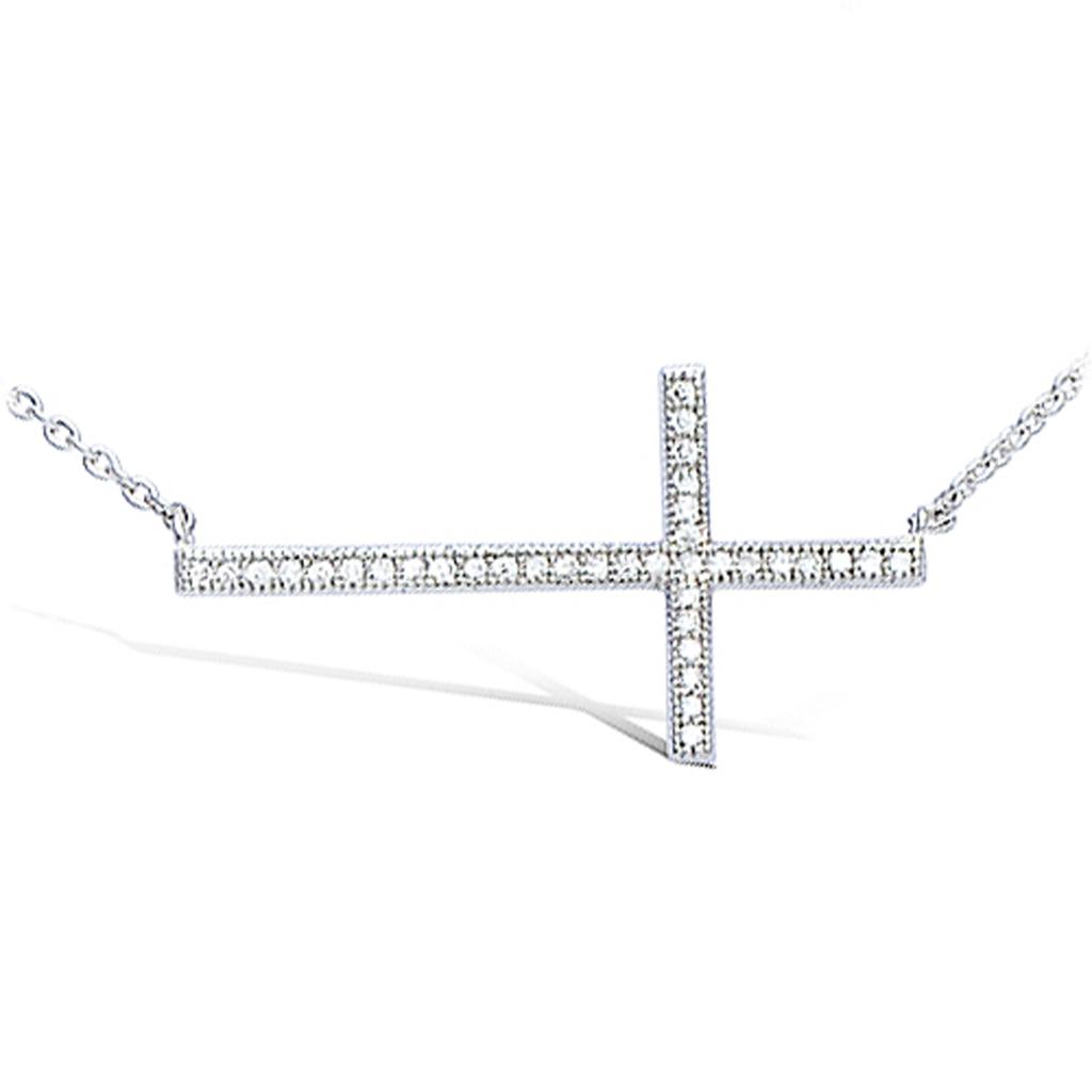 Les Trésors De Lily [K9509] - Collier Argent 'Croix' blanc argenté (rhodié) - 29x15 mm