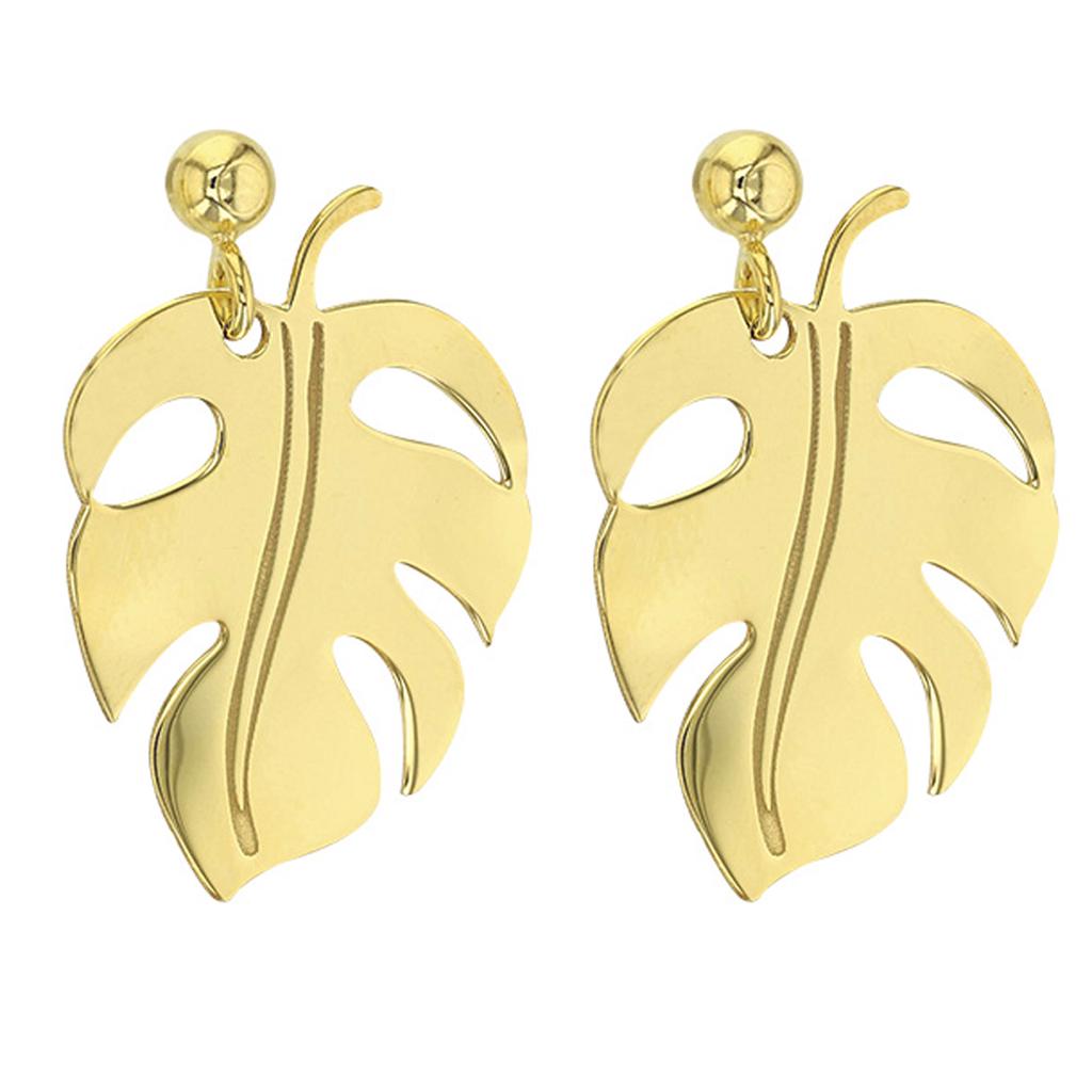 Les Trésors De Lily [Q9338] - Boucles d'oreilles artisanales argent 'Jungle' doré - 25x19 mm (feuilles de monsteras)