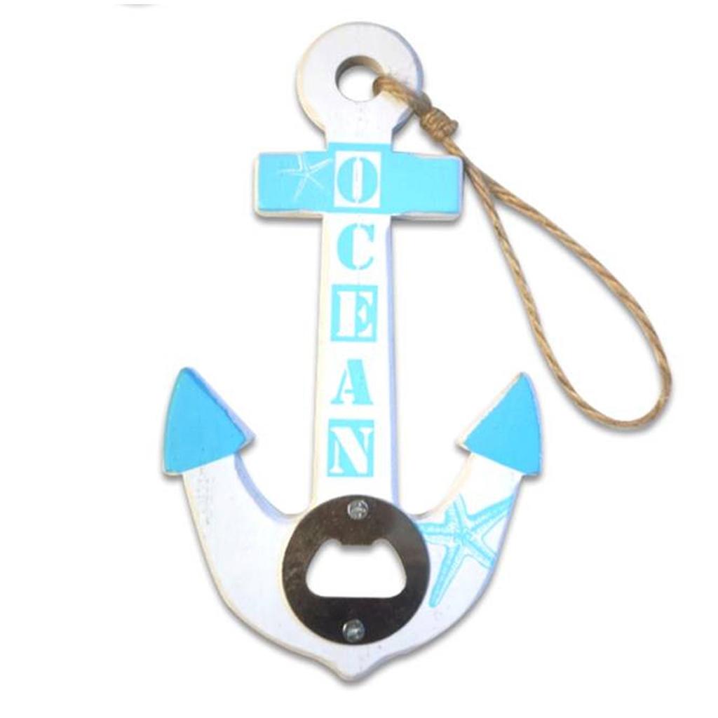 Les Trésors De Lily [P8840] - Décapsuleur humoristique bois 'Monde Marin' (Ancre marine) blanc bleu - 19x11 cm