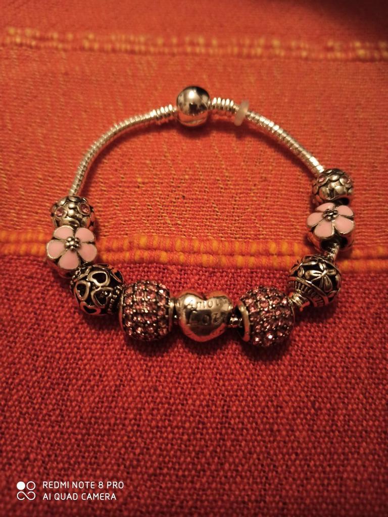 Antikt berlockarmband & armring med kärlek och blompärlor Kvinnors bröllopssmycken
