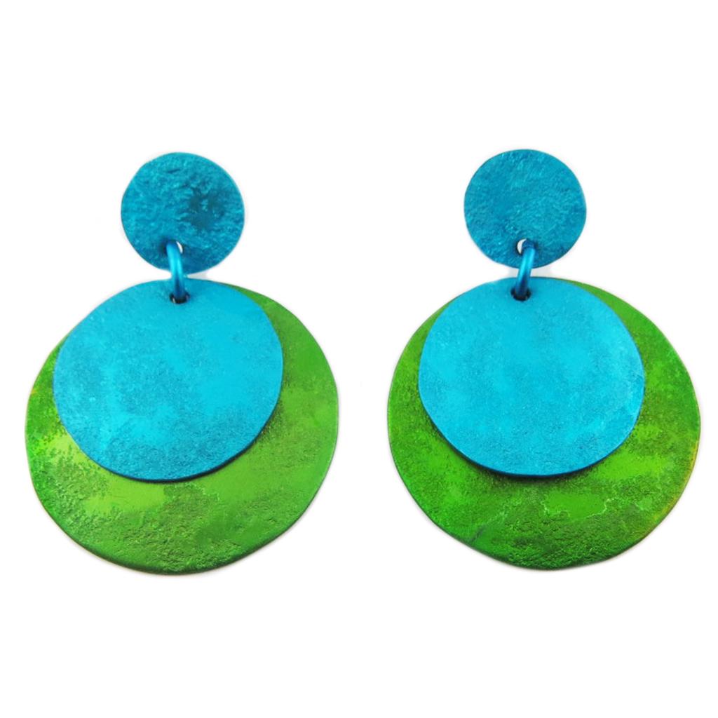 Les Trésors De Lily [R1252] - Boucles d'oreilles artisanales 'Aluminirock' bleu vert - 5x3. 5 cm