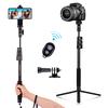 Bred kompatibilitet Universell 1/4-tums skruvdesign, och kommer med en telefonhållare och en adapter för sportkamerafäste, selfiestick-stativet är kompatibelt med digitalkamera, spegellös kamera, actionkamera och de flesta smartphones.
