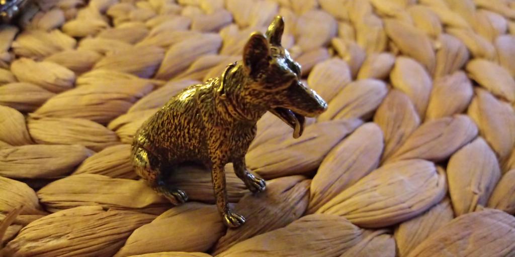 Mässing Lucky Fortune Dog Heminredning Små prydnadsföremål Liten valp Brons Kinesisk Desktop Små Statyetter Koppar Varg Te Husdjur