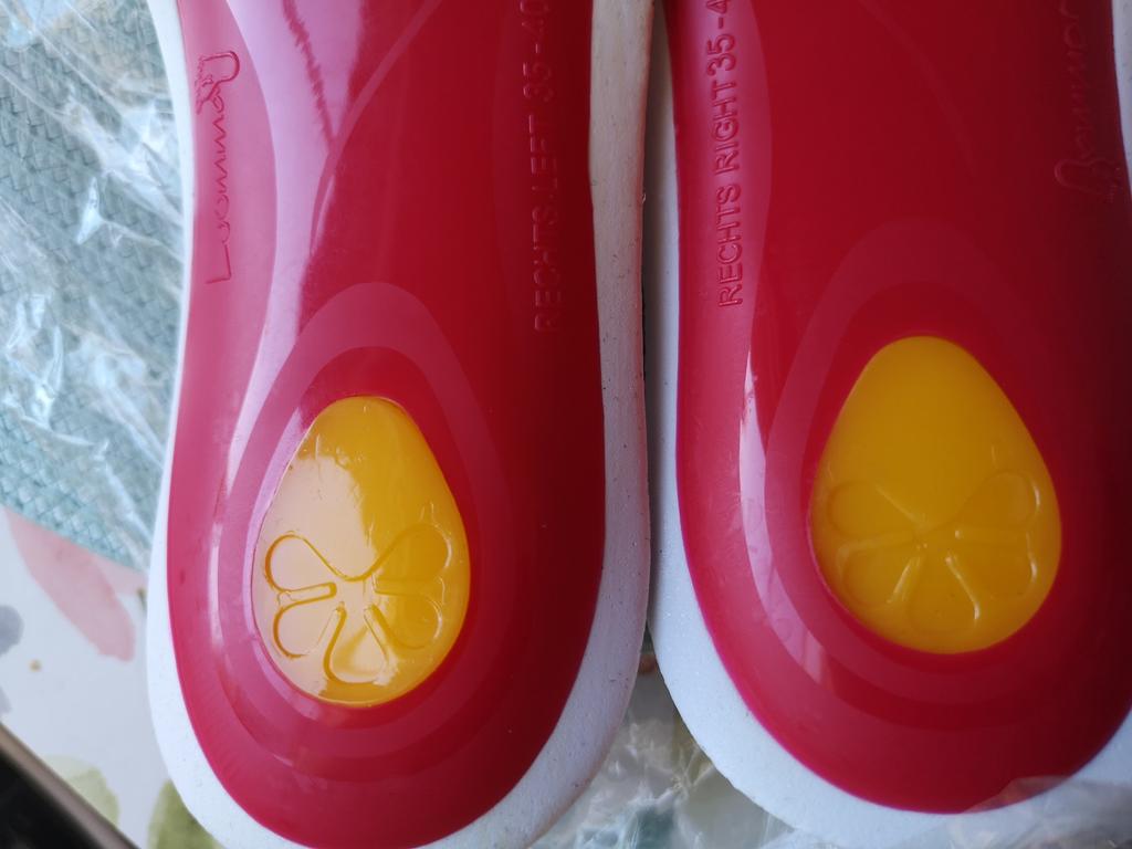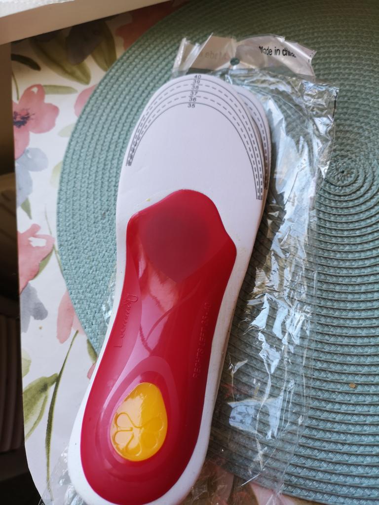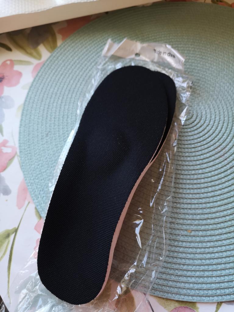 Utmärkt köpt en gång för utt mina fötter älskar dom. Mjug gul gummi plup under hälen pilot och hålfots stöd. Man kliper efter storlek markeringen för att få sin storlek om din sko är lite smalare går det att klippa lite på det vita på sidan. Så sköna.