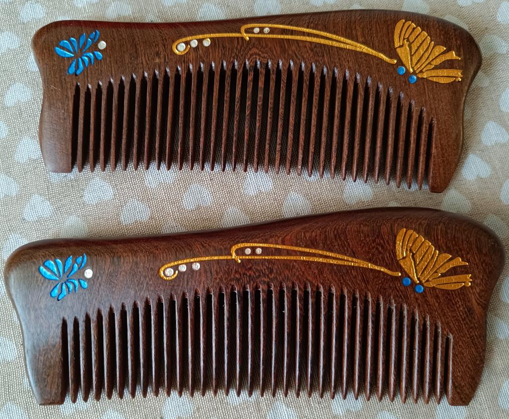 Träkam Fjärilssnideri Högkvalitativ retro träkammar Naturligt svart guld Sandelträ Hårstyling med smal tand