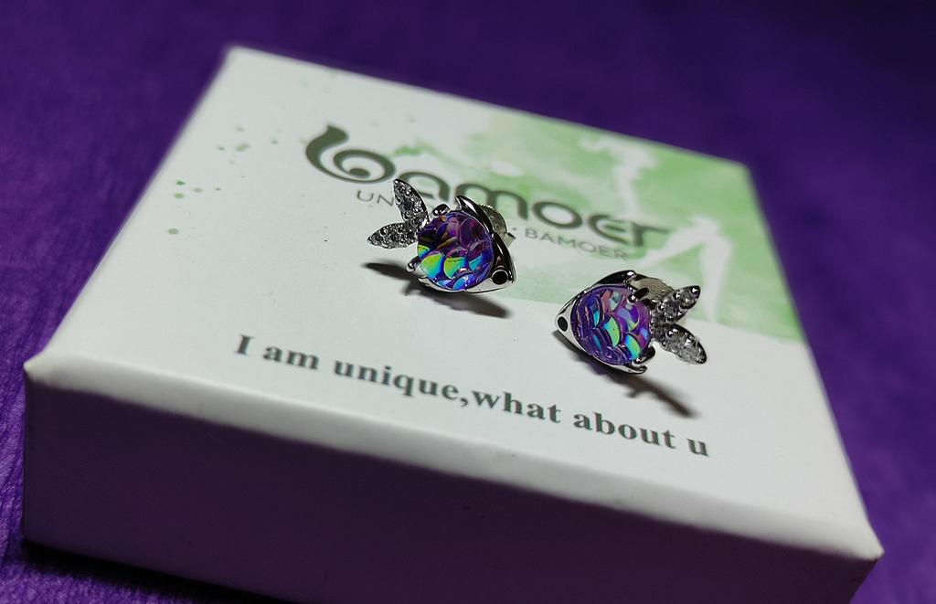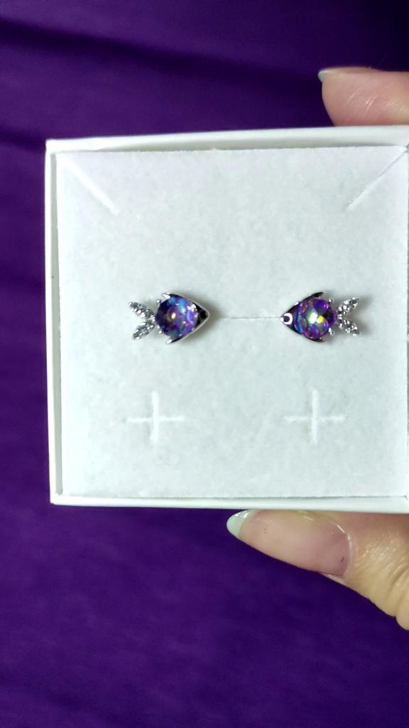 BAMOER 925 Sterling Silver Hypoallergena örhängen Glittrande färgglada Cubic Zirconia Glad liten fisk Kvinnor Örhängen