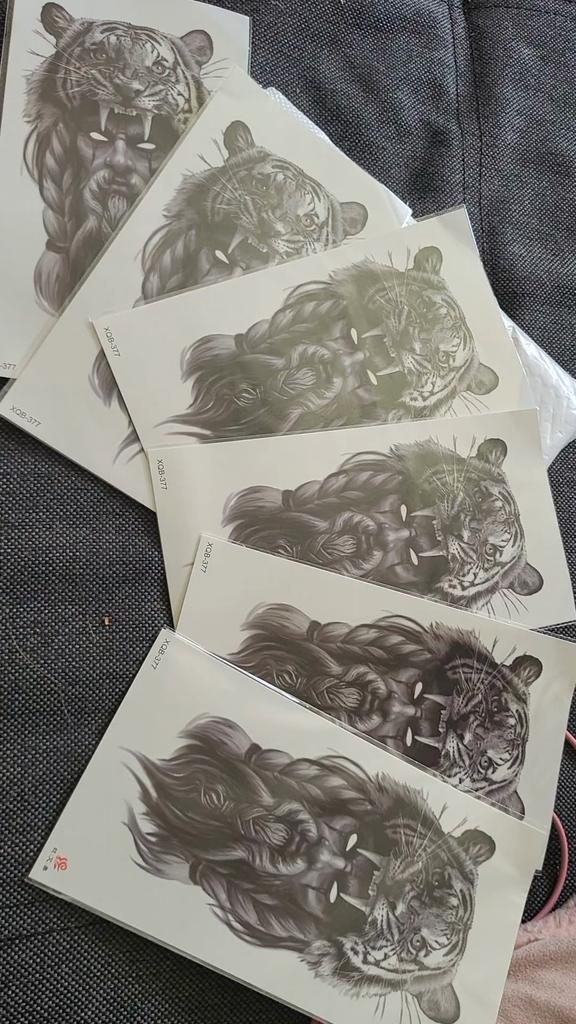 Kronlejon Blomma Tillfälliga Tatueringar För Kvinnor Män Barn Pojke Svart Tiger Skelett Tatuering Klistermärke Falska Kompass Tatueringar Halv ärm