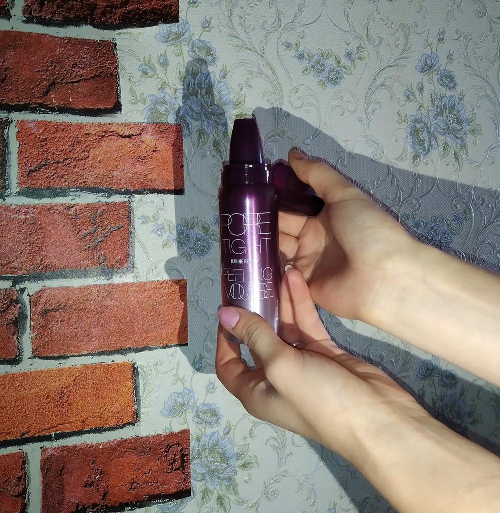 Unique mousse-type peeling formula with alginic acid found in deep-sea marine botanicals such as red algae captures impurities, blackheads, makeup residue, and dead skin cells within the pores of the skin to cleanse and purify the skin. The further added ingredient from purple sea urchins deliver tightening benefits to sagging skin for an overall smoother and firmer-looking skin.