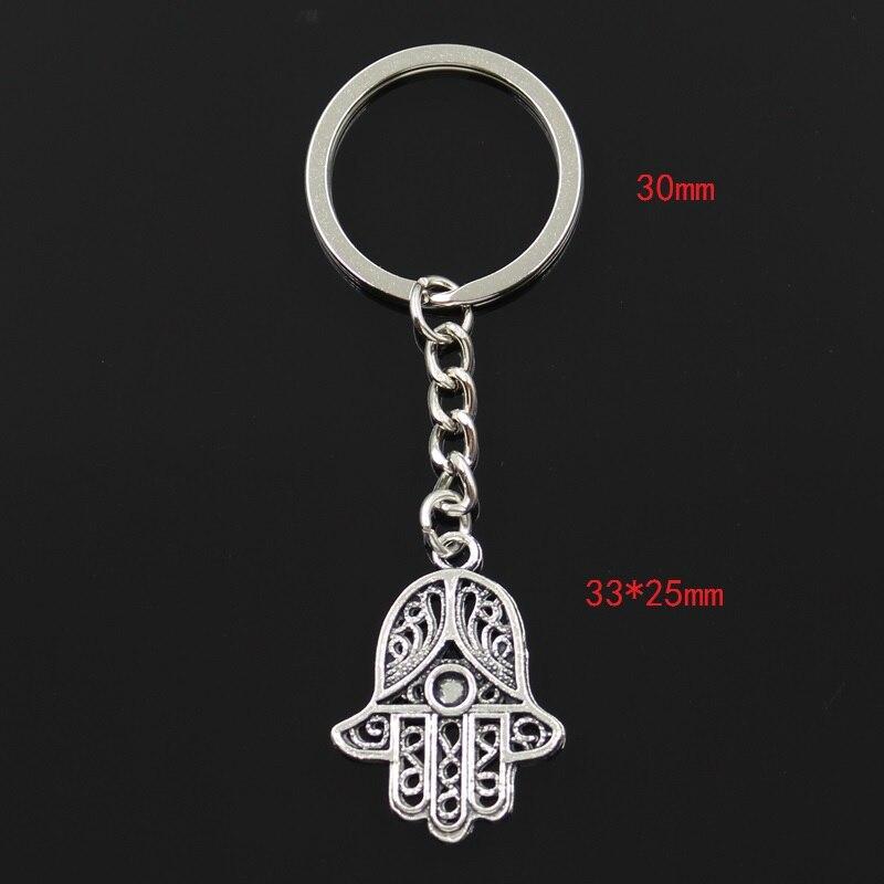 Fashion 30mm Key Ring Metal Key Chain Keychain Jewelry Antique Silver Color Fatima Hand Hamsa Palm Protection 33x25mm Pendant