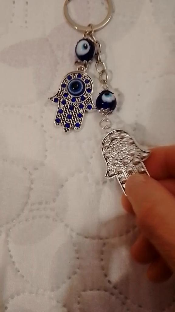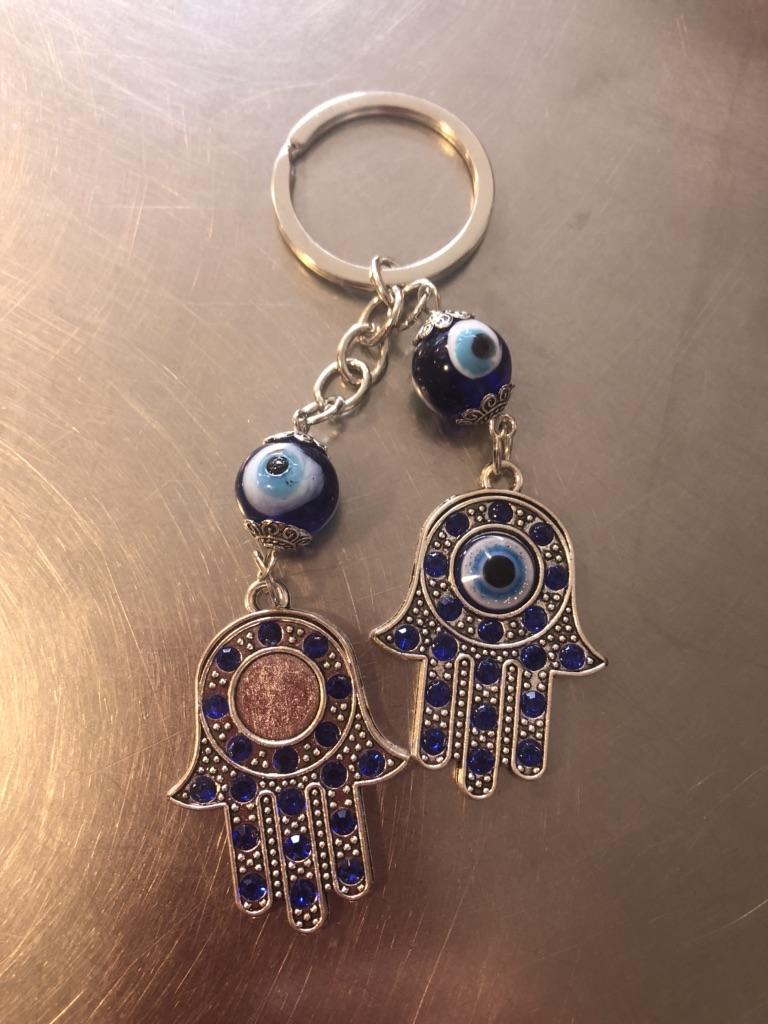 1 ST Turkish Blue Evil Eye Rhinestone Hamsa Hand Nyckelring Ring Hållare Nyckelring Amulett Lycka Berlock Välsignelse Hänge