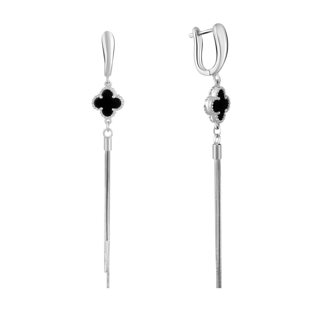 Silverörhängen med naturlig onyx (2098980)