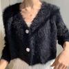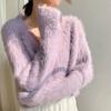 Hirsionsan Gentle Purple Mohair Cardigan Sweater Dam Cropped Mink Fleece Enkelknäppt tröja Kvinnlig Elegant mode varma toppar