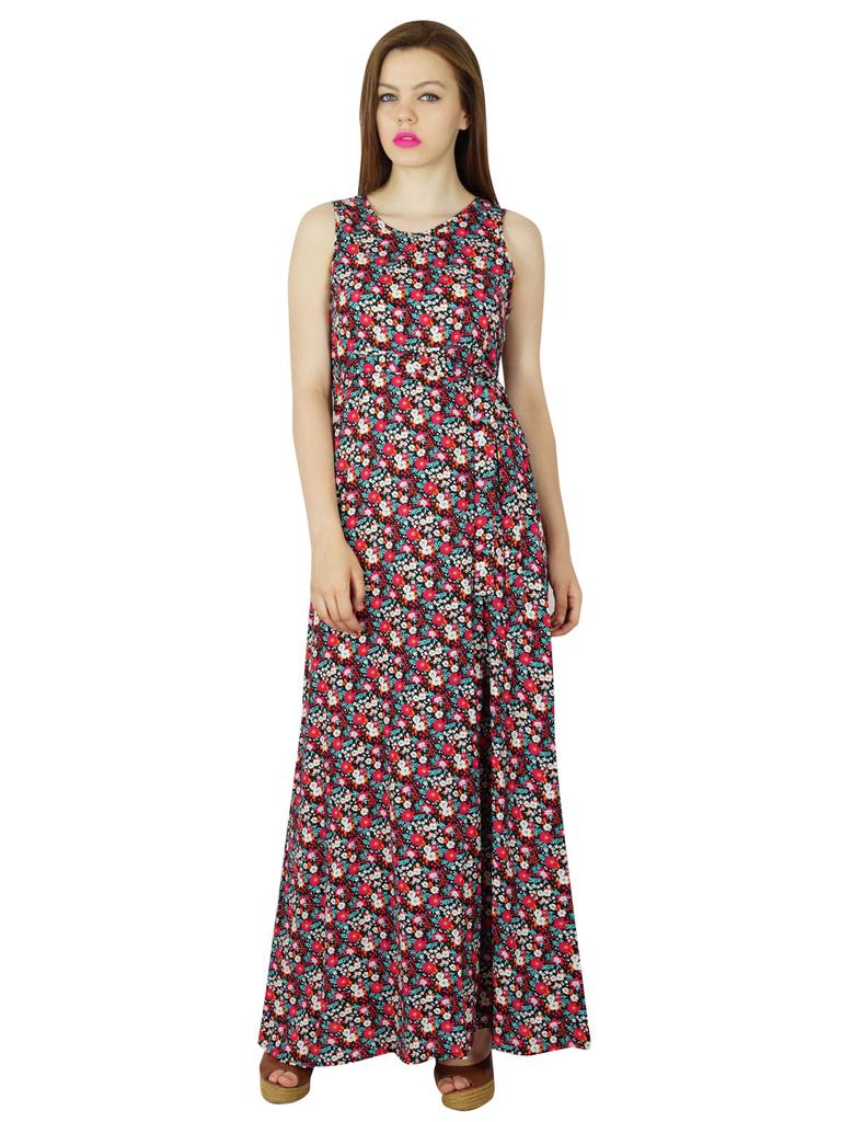 Elegant and trendy, this long maxi dress is an amazing piece of work created by the artisans of Bimba. Comes with a neatly cut side slit, this long dress has color chromes that are soothing to eyes. To add on tho that, we have the tiny and adorable floral patterns splashed all over the long maxi dress making the dress more pleasing. The extremely skilled artisans have crafted this sleeveless outfit in smooth and soft rayon fabric that is not only known to be one of the stylish fabrics but also a cozy one. So ladies, hurry and grab one for yourself.