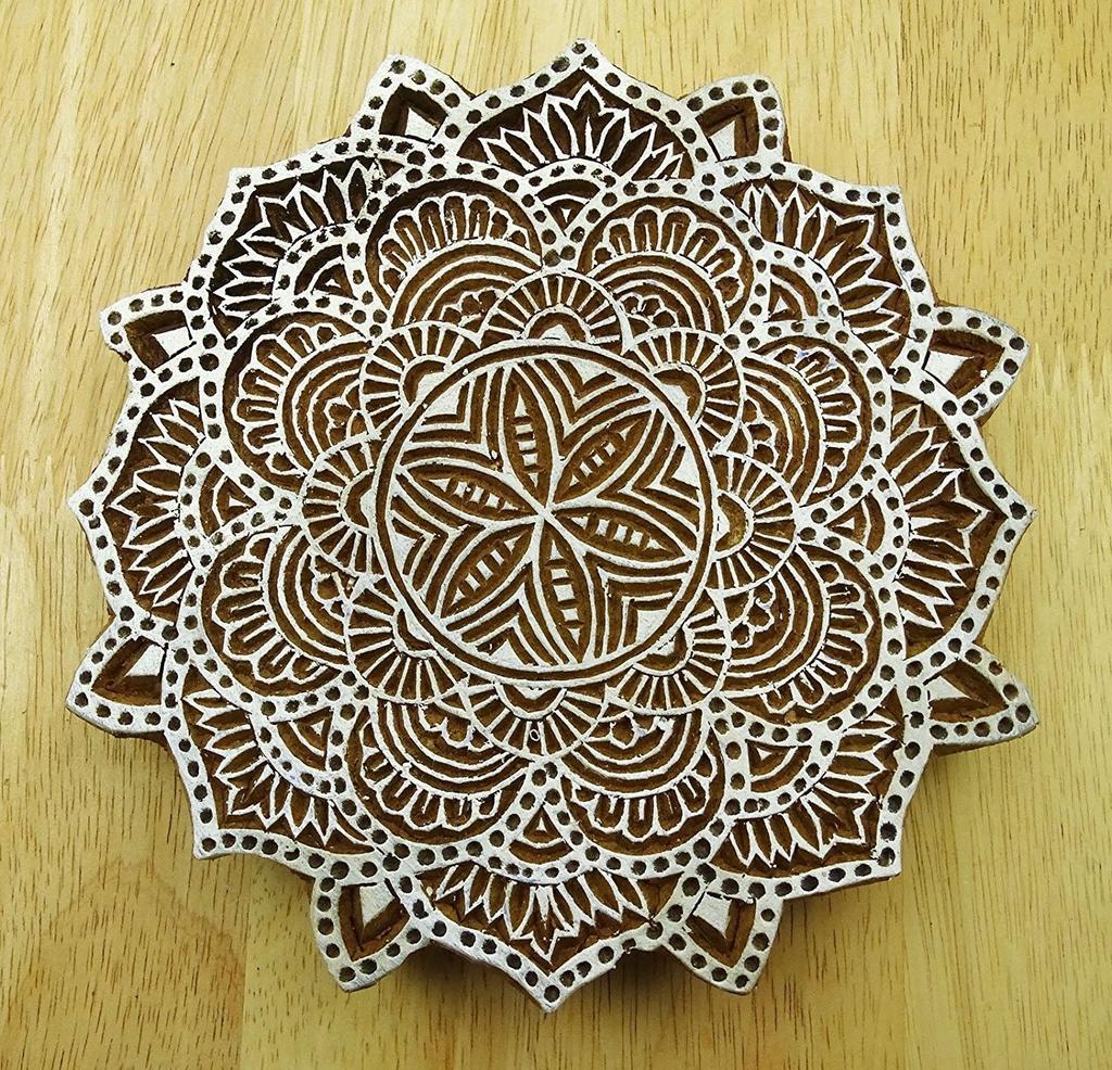 Wooden Textile Stamp Block Print Brown Hand Carved Floral Stamp Printing