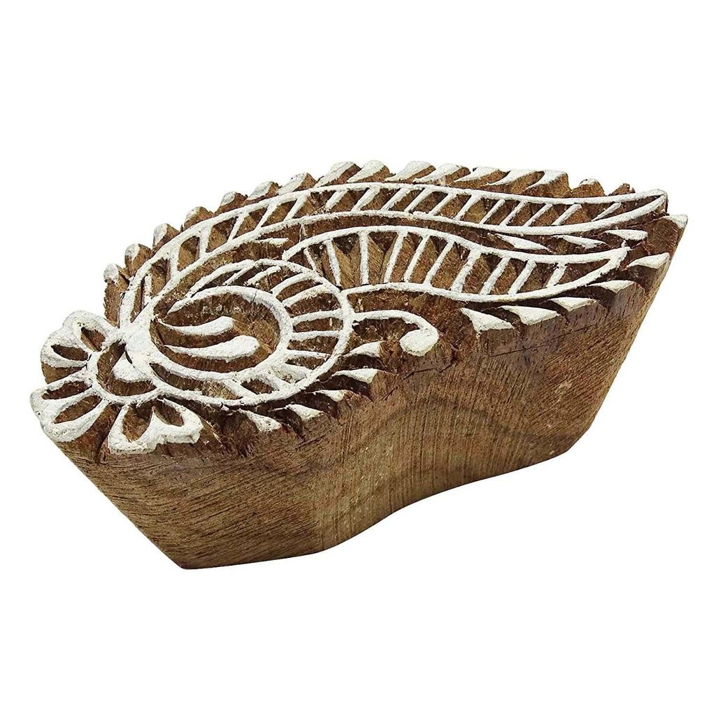 Paisley Border Stamp Textile Printing Block Brown Handcarved Stamp Wooden
