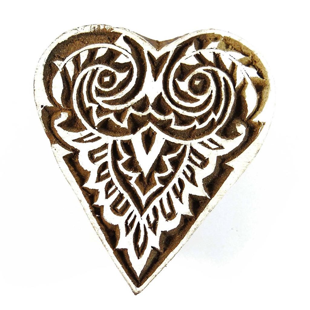 Heart Shape Floral Printing Block Wooden Designer Wood Stamps Textile Blocks