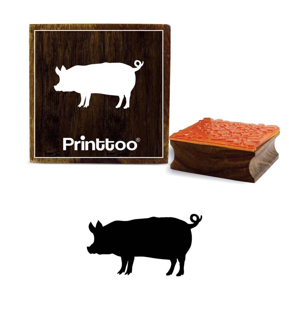 Printtoo Scrap-Booking Pig Design Diary Card Square Brown Wooden Rubber Stamp-2 x 2