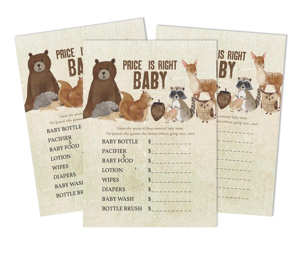 Inkdotpot If The Price Is Right Baby Shower Game Card Of 50 Gender Neutral Jungle Animals Baby Shower Party