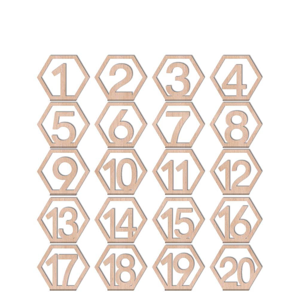 Numéros de table hexagone en bois (20 pièces)