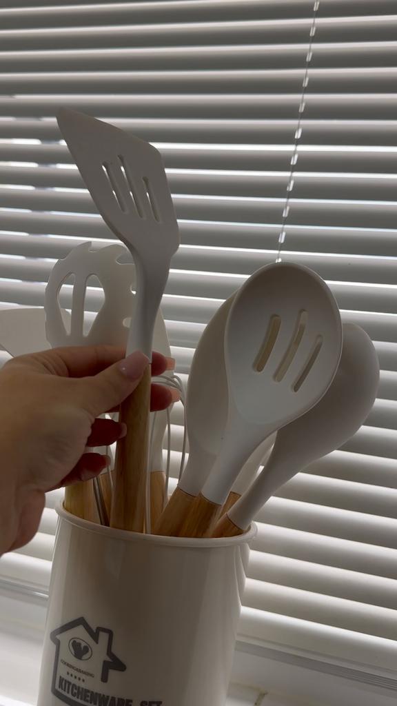 Non-stick silikon Köksutrustning Köksredskap Set Kökskärl Spatel Spade Äggvispare Trähandtag Köksredskapssats