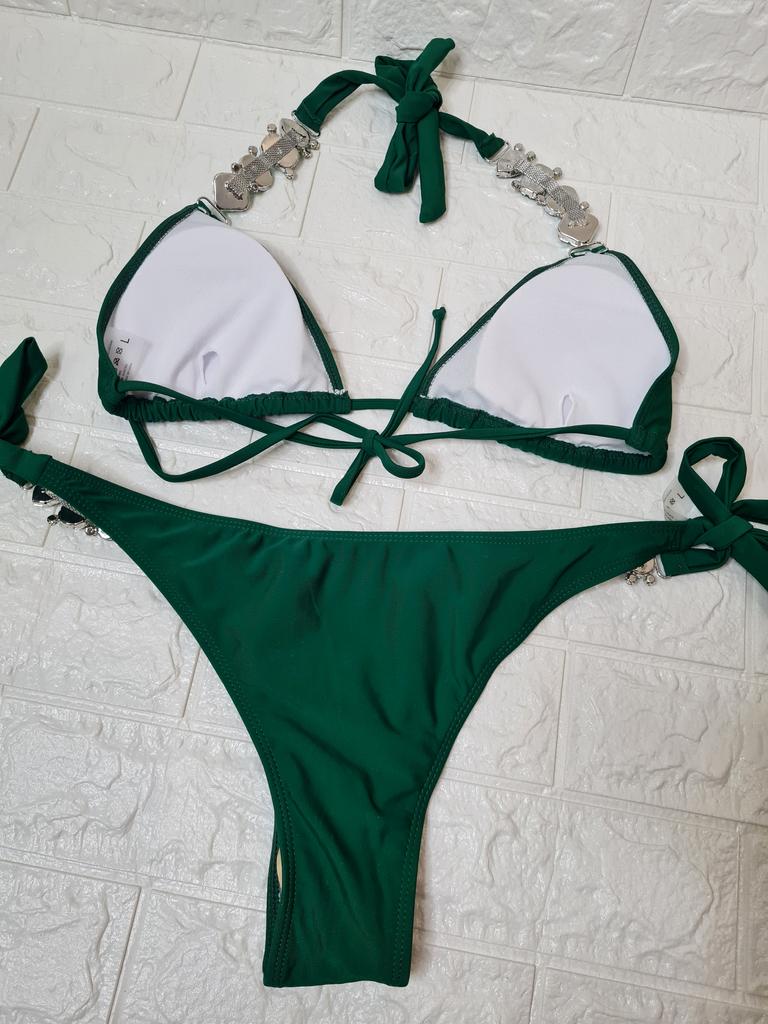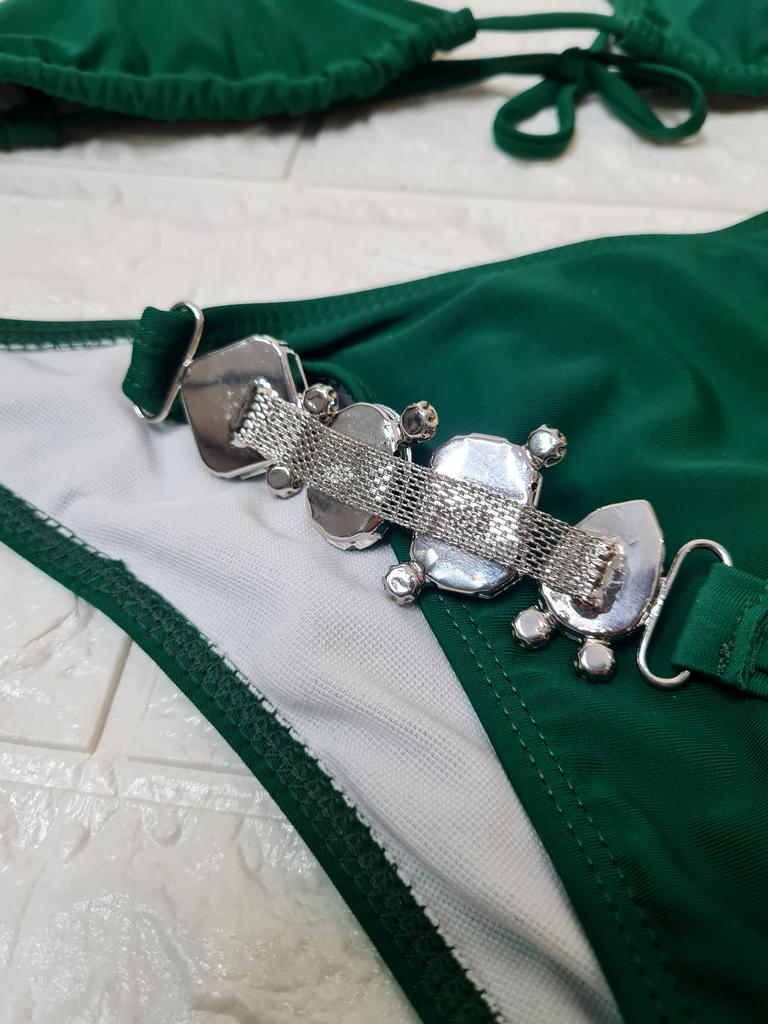 2 st/set Delad bikini Strass Metallkedja Enfärgad Sexig Justerbar Baddräkt för Simning