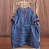 Johnature Women Vintage Ramie Shirts Top Print Floral Button Loose Blouses Summer Seven Sleeve Chinese Style Long Shirt