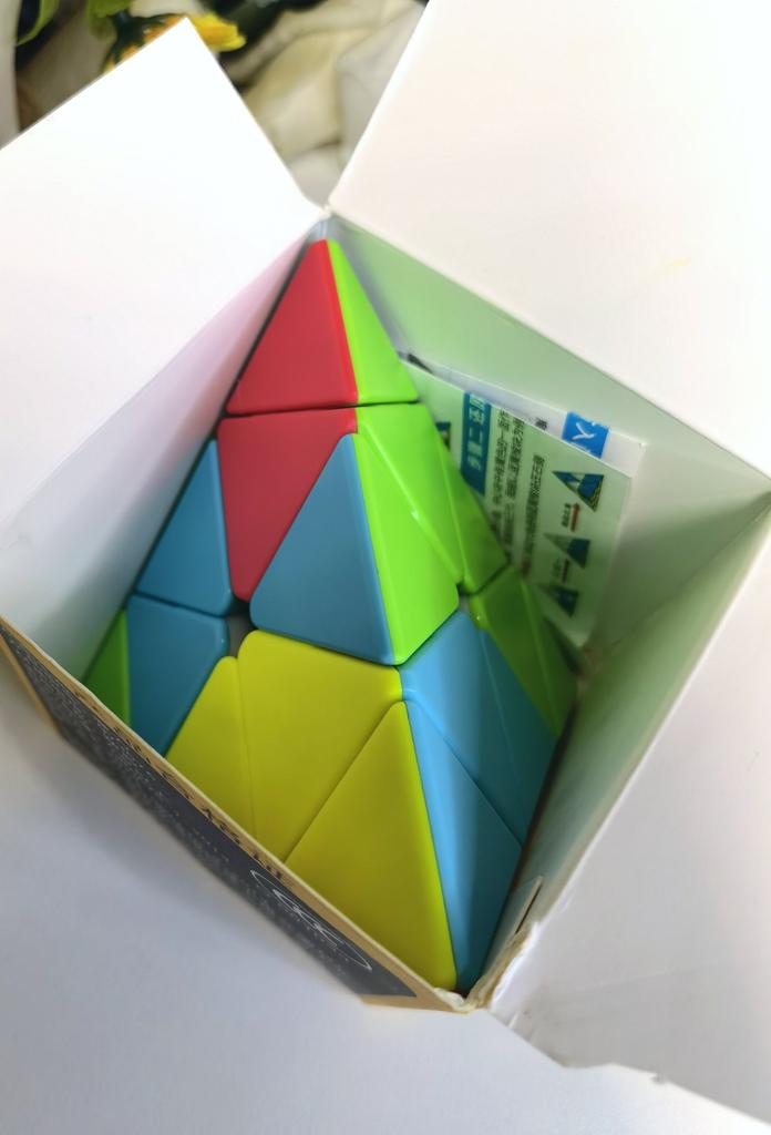 Activate your imagination and creativity with this pyramid-shaped rubik's cube. A puzzle game that will never go out of style, even if you are a beginner or a professional, it will take you into a world of fun to spark your imagination and memory. Highly recommended 👍👍😉👍👍🏻. 📦 Package Content: A rubik's cube in the shape of a pyramid. 👍Pros: Sent to Spain in 25 days.✈️ Product quality is very good. Very well protected package for the trip. Very good presentation in its box. It is a kind of puzzle toy that makes you think. Stimulates their cognitive abilities and hand-eye coordination. Made of ABS material. durable and safe. color does not fade. Spring design and improved anti-pop technology that allows you to precisely adjust the tightness of the hub. It is compact, easy to carry, you can play wherever you want. For all ages. With this pyramid-shaped cube, it can develop the brain of children, release the pressure of adults, and help slow down the memory loss of the elderly. It is a perfect gift for birthdays, Christmas or just to enjoy with children, friends and family members.. 👎🏻Cons: nothing to note. .