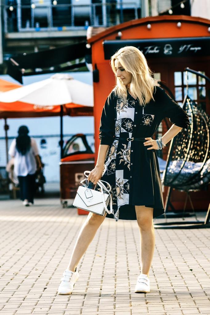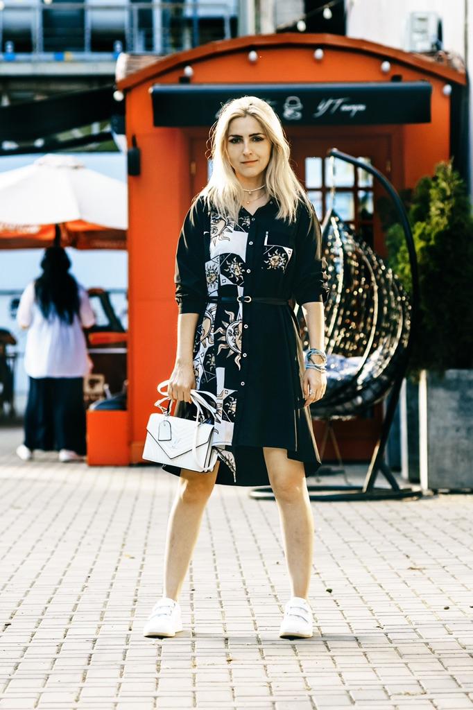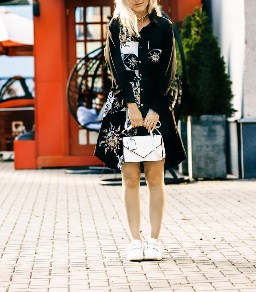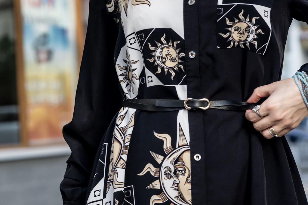 Med ett bälte Ny modedesign Smal Smal Minoritet Medium Lång Klänning Kvinnor Ny Vår Svart Vit Student