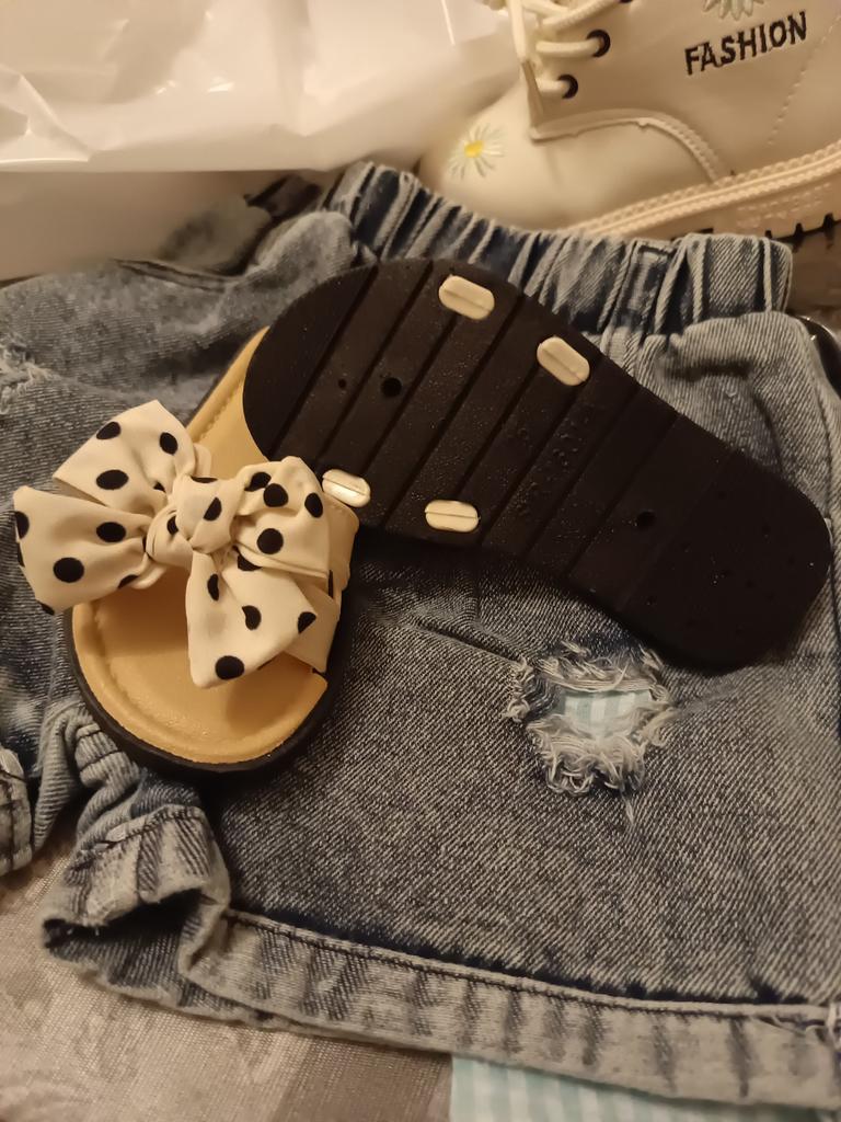 Barn Flickor Sommar Strandtofflor Småbarn Prickar Rosett Öppen tå Slidtofflor Halkfria Cross Tofflor med bowknot för barn