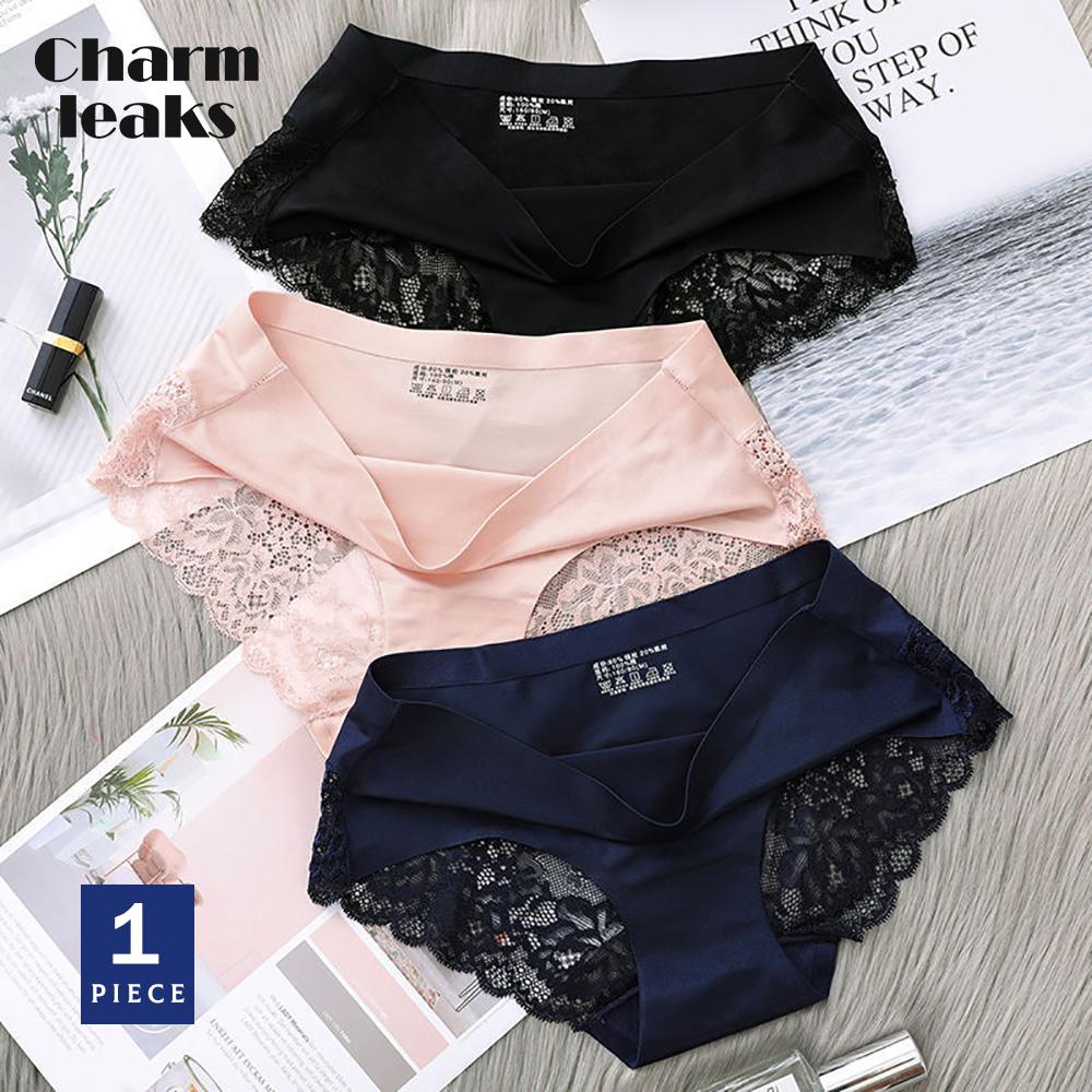 Charmleaks Women’s Panties Sexy Seamless Silky Panties Back Lace Cutout Solid Comfortable Soft Briefs S-2XL 1 PCS
