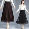 Vår Sommar Dam Midi Mesh Spets Plisserad kjol Damkjol Hög midja Solid Smal Medellång A-linje veckad kjol